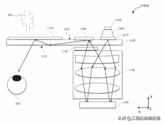 专利描述了一种用于增强现实头显目镜的光学系统,后者配置成将图像传递到眼睛,其中光学系统包括光学元件。设置光学器件以接收从光源输出的光线。光学元件相对于空间光调制器布置,使得从光源接收的光线穿过光学元件并照射空间光调制器。重新引导照射空间光调制器的光线通过光学元件,并通过至少一个内耦合光学元件耦合到至少一个波导中。至少一部分耦合光线通过至少一个外耦合光学元件,然后从至少一个波导射出并指向用户的眼睛。