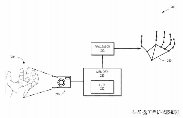 处理器识别由摄像头捕获的二维图像中的手部关键点。使用关键点的位置来访问潜在姿态的查找表(LUT),从而确定手部的三维姿态。在一些实施例中,关键点包括手指和拇指的尖端位置,连接手指和拇指指骨的关节,表示手指和拇指与手掌连接点的手掌关节,以及表示手与前臂的连接点的手腕位置。