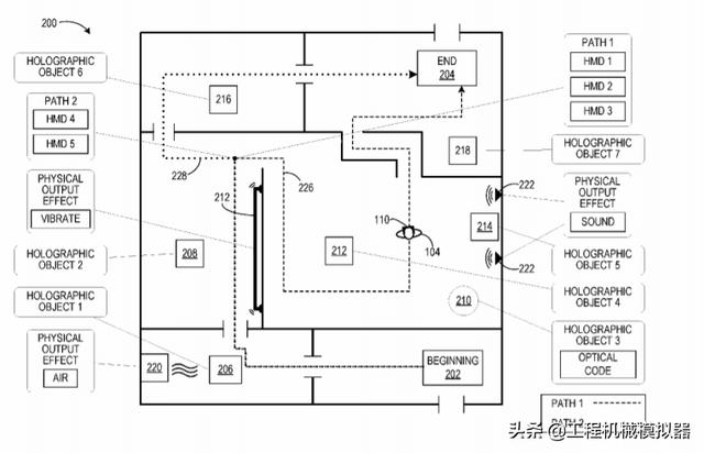 专利描述了基于位置的全息体验。一个示例包含一种头显设备,后者包括透视显示器,一个或多个位置传感器,逻辑子系统和存储子系统,存储子系统包括可由逻辑子系统执行的指令。通过一个或多个位置传感器确定头显设备沿全息体验路径的位置,检测头显设备的位置是否满足关于第一全息对象的基于位置的条件, 并在第一全息对象的相应位置显示第一全息对象。