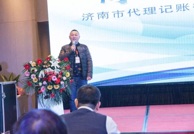 济南市财政局总经济师丁国春上台致辞,对协会成立送上了衷心的祝贺,并叮嘱协会与财政局会计处加强交流。丁总经济师高度赞扬了济南代理记账行业为济南市经济发展所做的贡献,对协会的未来给予了厚望。