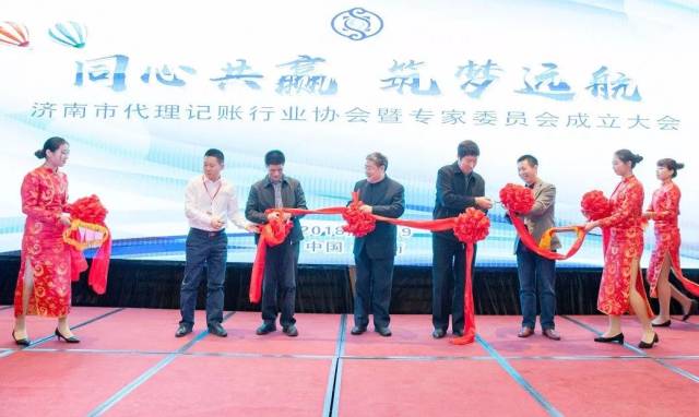 在参会人员热烈的掌声中,丁总经济师、王局长、齐巡视员、济南代理记账行业协会第一任会长张钦光以及济南市财税届名师郝守勇共同为协会剪彩,正式宣布济南代理记账行业协会成立!