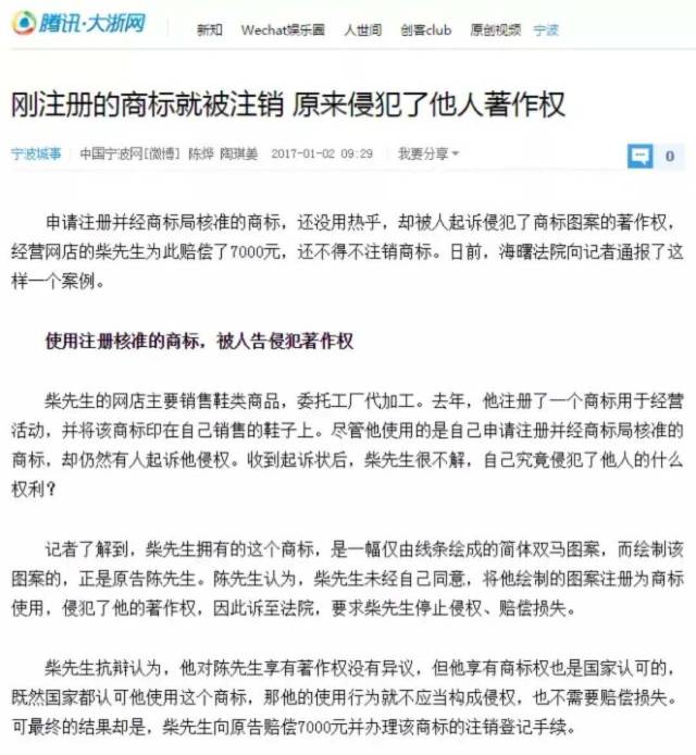 浙江一位经营网店的柴先生,注册了一个商标并已通过商标局核准下证,但没使用多久,却被人起诉侵犯了著作权(及版权),柴先生为此赔偿了7000元,还不得不注销商标。