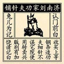 相比于现在五颜六色的商标标志,这件“白兔儿”商标显得很朴素,它采用雕版制作,中间是一只白兔拿着铁杵捣药,白兔上面印有一排字“济南刘家功夫针铺”,两边刻有“认门前白兔为记”,就是要民众认清楚商标重要依据。