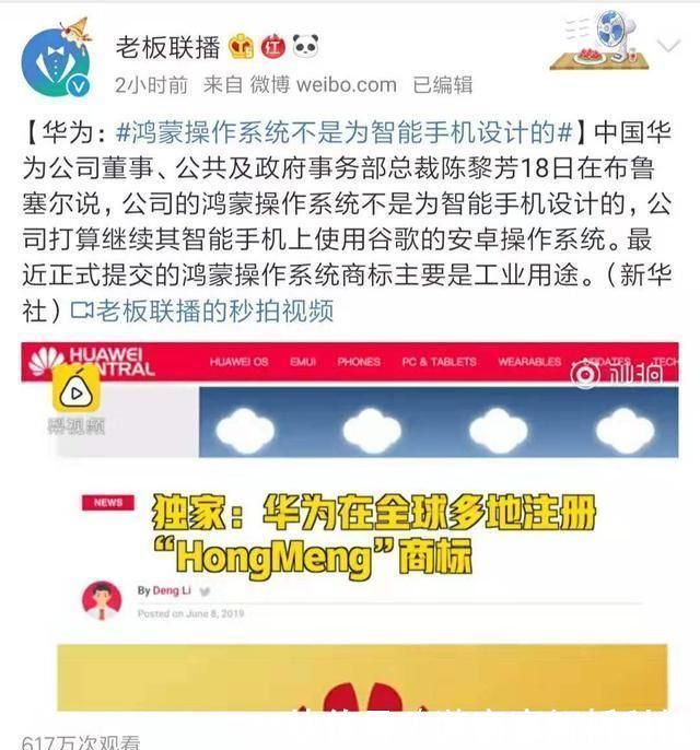 虽然华为在全球各地不断的注册商标,但是从来没有说过用在手机系统上,余承东没有说过,而近期由于美国特朗普允许美国公司对华为供货,华为也宣布,将继续使用安卓系统,7月18日,华为公司董事、公共及政府事务部总裁陈黎芳18日在布鲁塞尔表示,公司的鸿蒙操作系统不是为了智能手机设计的,公司打算继续在自己的手机上使用安卓操作系统,而最新正式提交的鸿蒙操作系统商标,主要是为了工业用途。