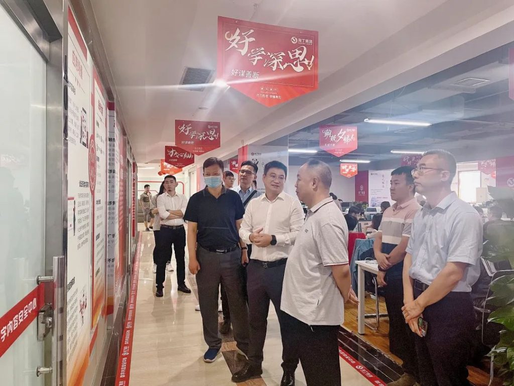 在参观过程中,苏斌向董校长一行介绍:淘丁集团基于大数据、人工智能、区块链等高新技术,致力于企业财税服务、智能财务税务、政企大数据、内容安全&数据标注的四大生态集群建设,业务发展已卓有成效。现阶段正在布局元宇宙企业级服务及数字艺术品等方向的业务领域。