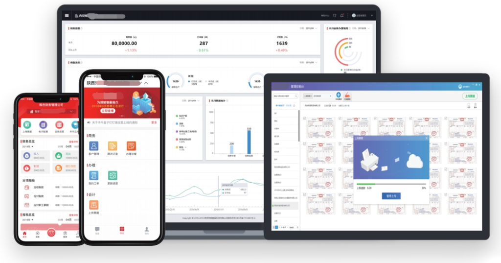 △平台智能扫票、智能做账、数据看板等功能展示图