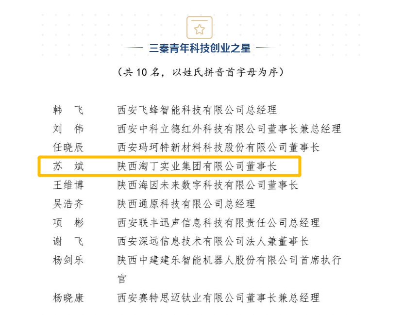 喜讯!祝贺淘丁集团苏斌同志荣获第三届“三秦青年科技创业之星”